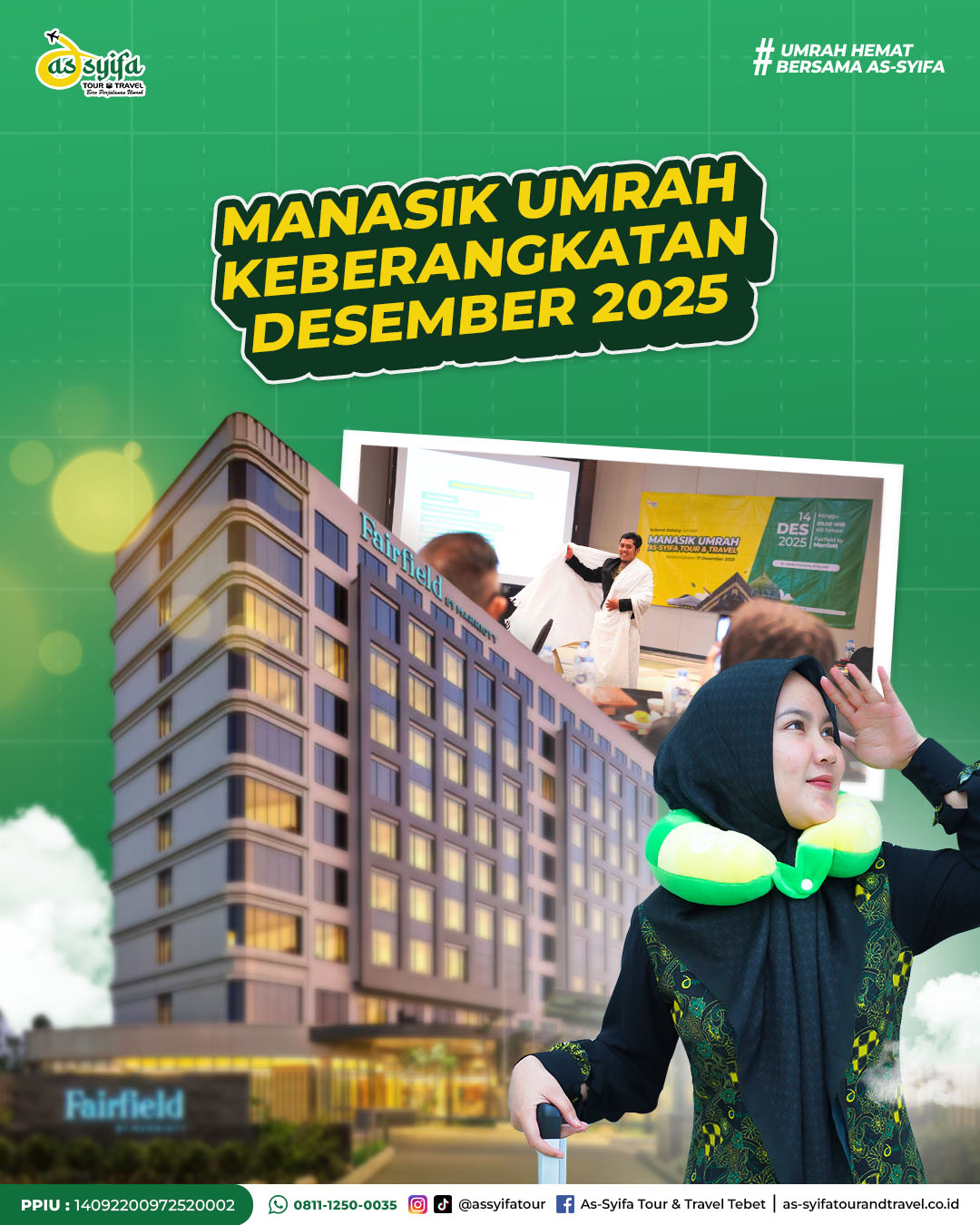 Hi As-Syifel Alhamdulillah, kegiatan Manasik Umrah As-Syifa Tour & Travel di Hotel Fairfield berjalan penuh dengan kekhusyukan dan semangat yang luar biasa. Para jamaah mengikuti setiap rangkaian manasik dengan